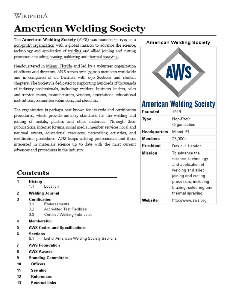 Headquartered in miami, florida, aws is supported by a staff of more than 100. In the welding industry, they ensure uniformity across all platforms, providing engineers with the proper specifications needed to develop quality designs and fabrications. Get the latest aws standards.
